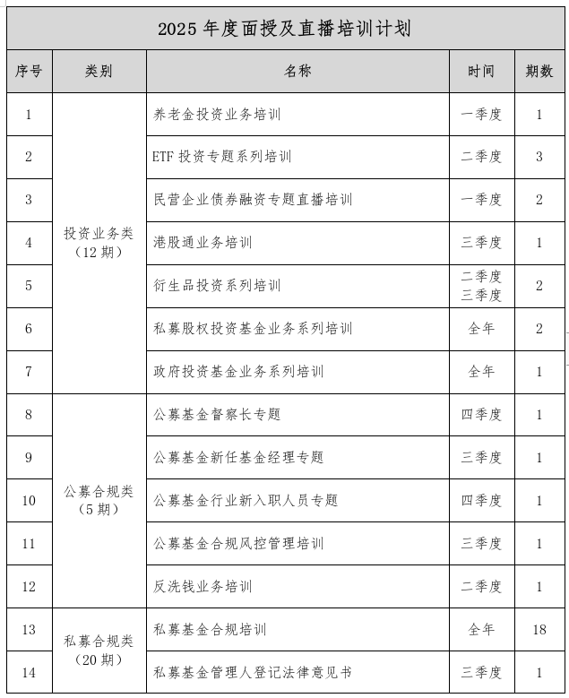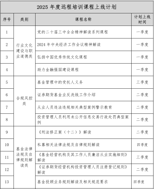 附件:中国证券投资基金业协会2025年度基金从业人员后续培训工作计划