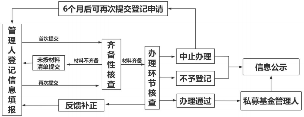基金业协会对申请机构做出办理通过、中止办理或不予登记的办理意见。