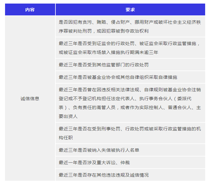 诚信信息的要求有所提升,包括申请机构、主要出资人、实际控制人、高管人员的诚信信息均需要核查。